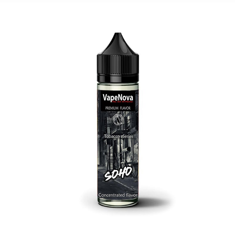 Το SOHO είναι ένα καπνικό υγρό που δεν χρειάζεται ιδιαίτερες συστάσεις. Γνωστή και επιτυχημένη συνταγή με μεγάλη αποδοχή στον ατμιστικό κύκλο. Καπνός , βανίλια, ξηροί καρποί, καραμέλα, και μια ιδέα από σιρόπι σφένδαμου.. Ήρθαν και συναντήθηκαν και δημιούργησαν μια ιδιαίτερη καπνική αλλά ταυτόχρονα εκλεπτυσμένη γεύση. Γευστικό και παράλληλα καπνικό αποτέλεσμα τρελαίνουν τις αισθήσεις. Το άρωμα, στην ατμόσφαιρα μοναδικά μεθυστικό. Η γεύση μοναδικά πλασμένη…. Δικαίως κατέχει πρωτιά στην εκτίμηση των ατμιστών!
